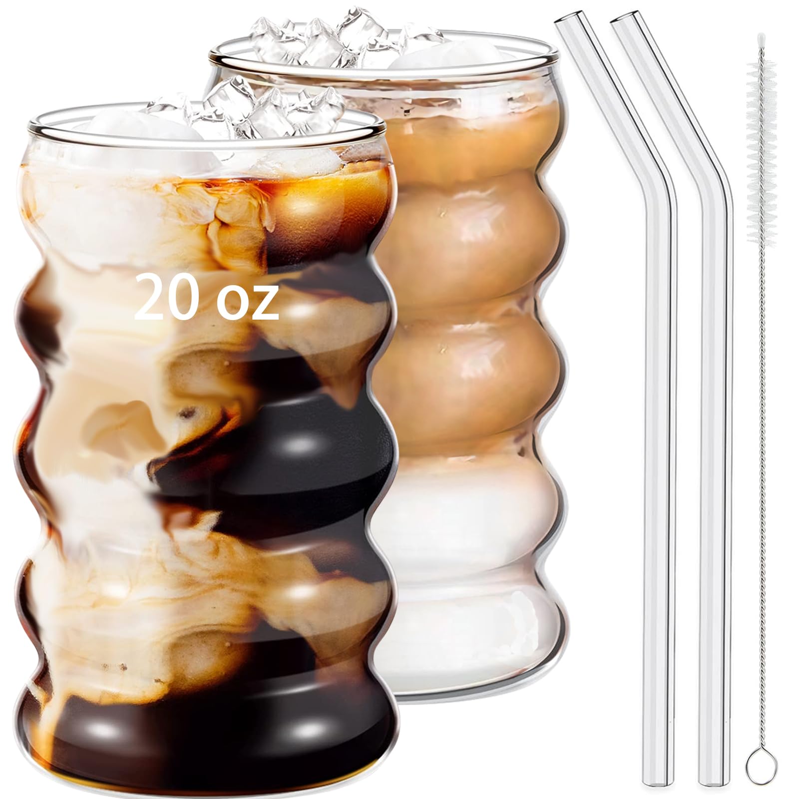 - Upgrade Capacity: The 20 ounce large capacity drinking glasses can hold more iced coffee or homemade drinks like boba milk tea or smoothie. Large capacity for more enjoyment.