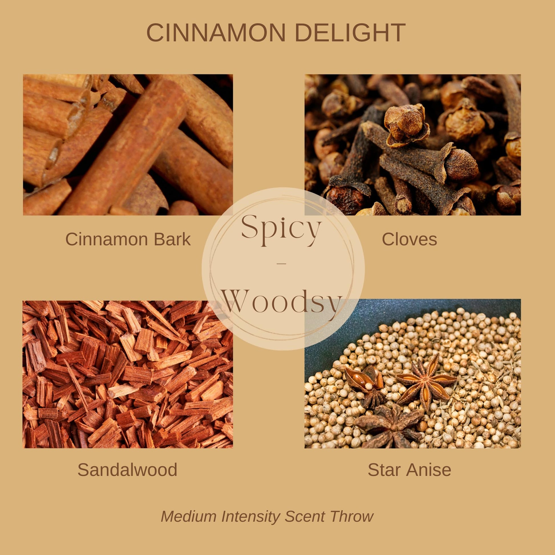 - CINNAMON DELIGHT: Nostalgia awakens with the aroma of cinnamon bark freshly stripped from its tree evokes cherished memories, transporting you to a place of warmth and familiarity. The mingling of earthy cloves with the robust roasted cumin creates a strong yet soothing spiciness that envelops your home with comfort. The creamy sandalwood adds a subtle, velvety touch, welcoming you home. This isn't your average grocery store cinnamon . ** This isn't your average grocery store cinnamon—this is 100% pure, natural cinnamon bark essential oil, capturing the true essence of pure cinnamon. Therefore, it is not suitable if you're looking for ground cinnamon. **