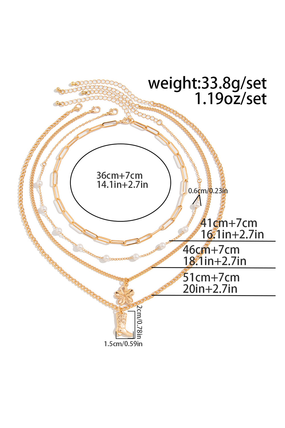 Gold Flower Boot Pendent Pearl Chain Necklace Set
