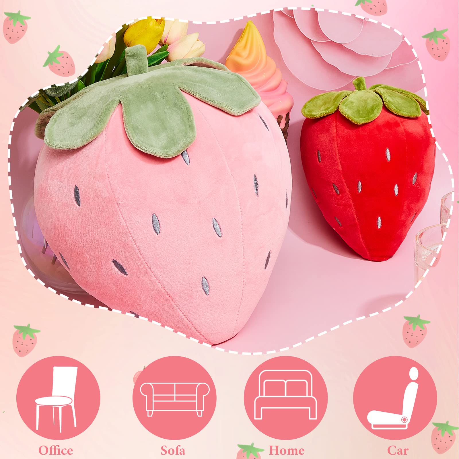 Juexica 2 Pcs Strawberry Pillow Fruit Plush Pillow 15.7 Inch 9.8 Inch Soft Kawaii Strawberry Bedroom Decor Aesthetic Cute Berry Decor for Room Home Birthday Gifts(Red,Pink)