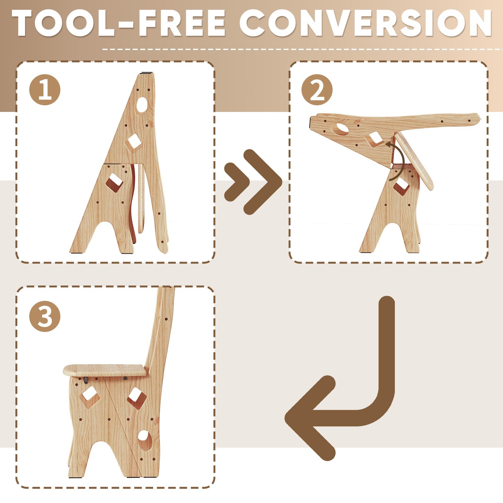 - EASY TO ASSEMBLE AND CONVERTIBLE: The package includes hardware for installation. Folding library chair can be easily converted between ladder and chair. Each side has a safety lock to prevent the 4 step stool from unfolding accidentally, you can use it with confidence