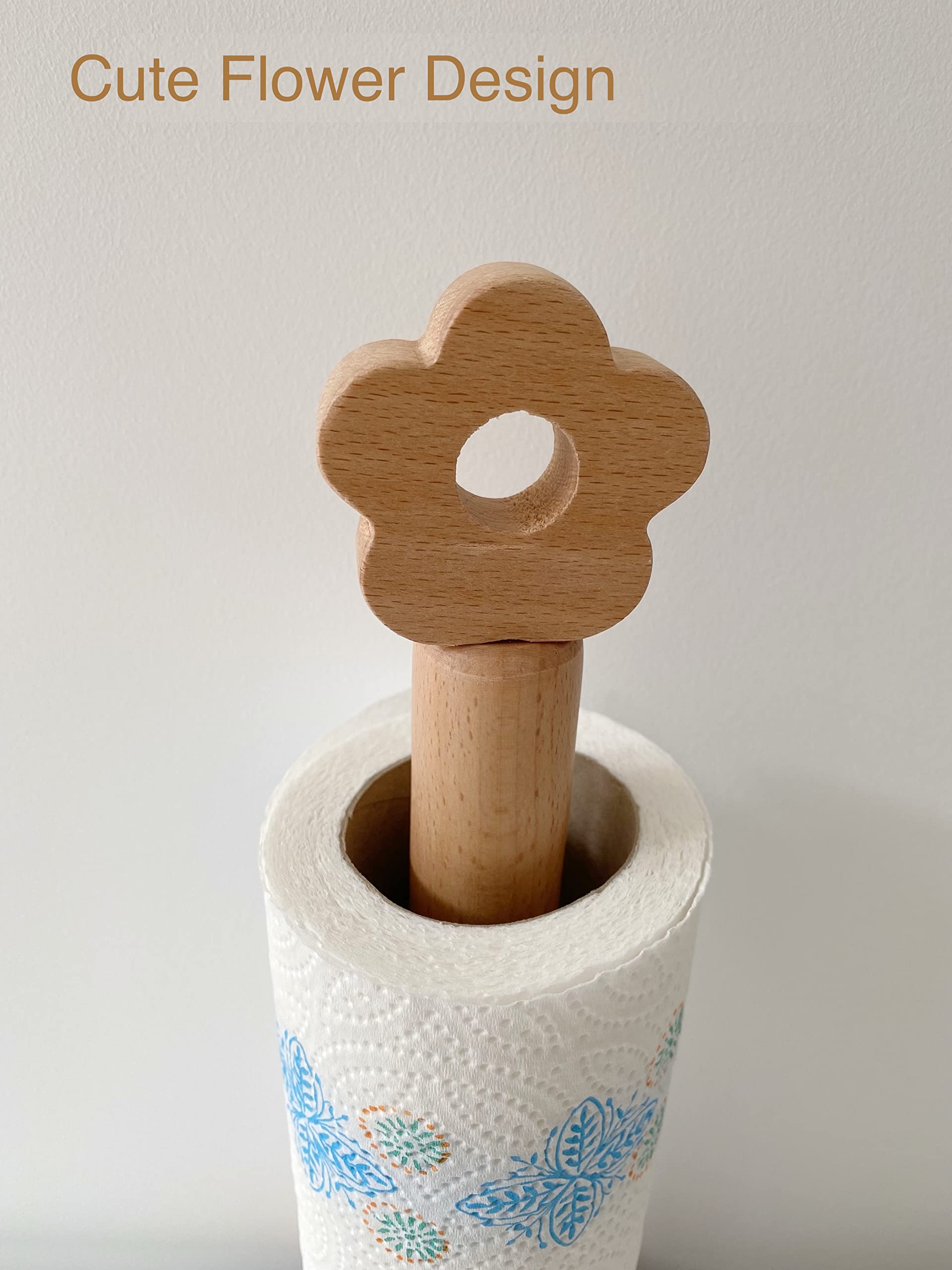 - [Simple and Natural] This cute paper towel holder is with flower design and made from beech, super cute and beautiful natural wood color, looks attractive on the counter.