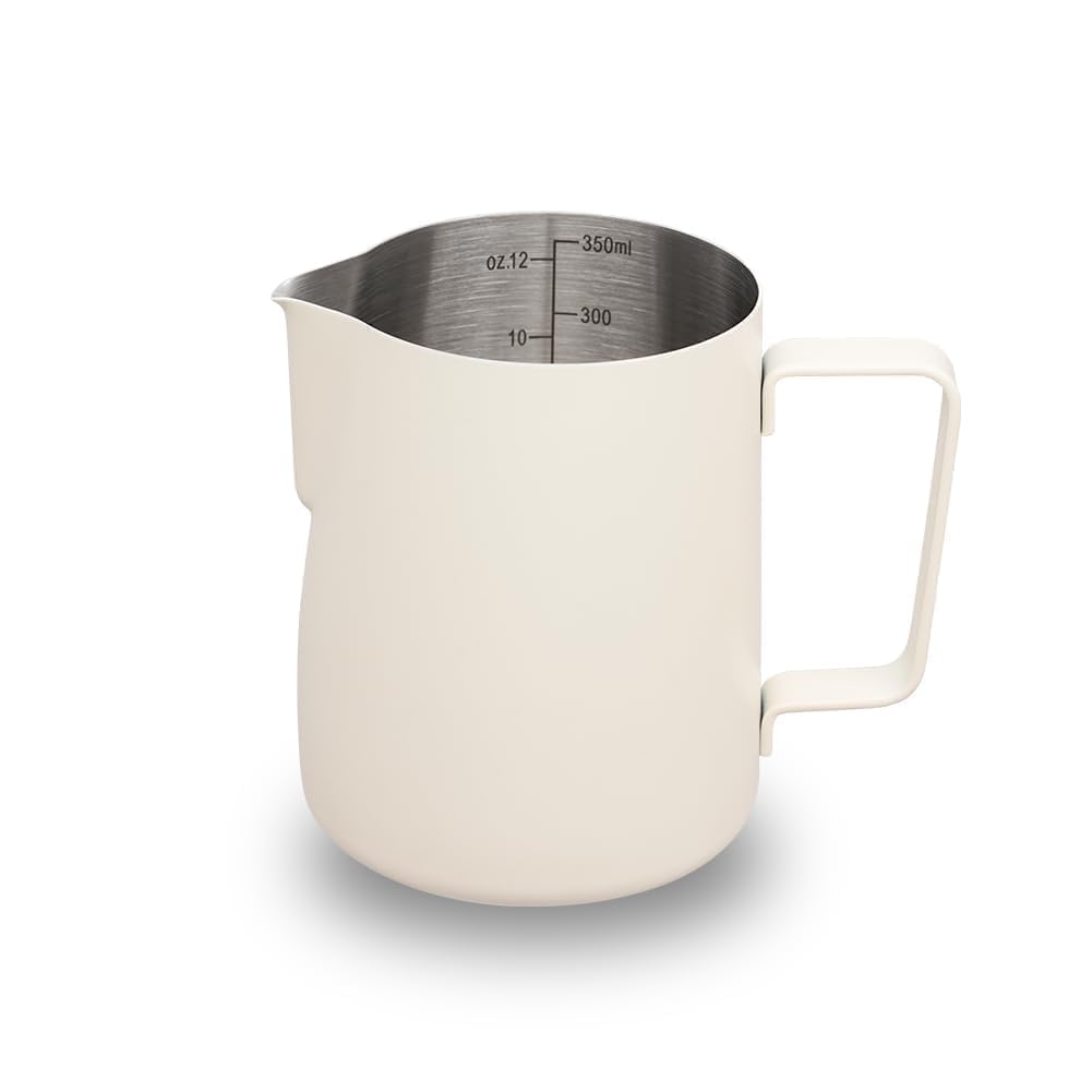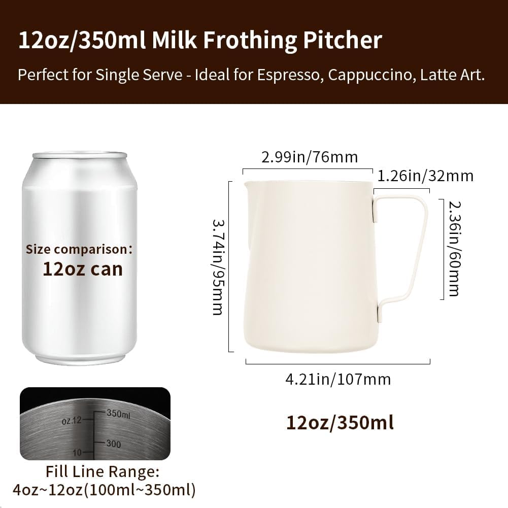 watchget Stainless Steel Milk Frothing Pitcher 12oz/350ml - Espresso Steaming Pitcher for Cappuccino, Latte Art, Coffee Machine Accessories Milk Jug Coffee Frother Cup, Creamy White