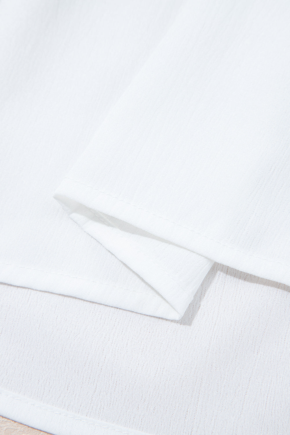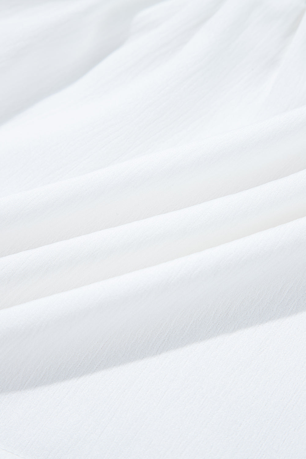 White Flower Lace-up V Neck Flowy Babydoll Blouse